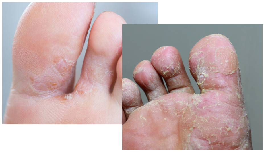 발의 무좀균은 환경이 받쳐줄때 피부를 감염시킵니다. 신발 내부와 같이 따뜻하고 습한 환경을 선호하며, 수영장, 샤워장 등에서 서식하다가 당신의 발에 옮겨올 수도 있습니다. 증상은 아래와 같습니다.