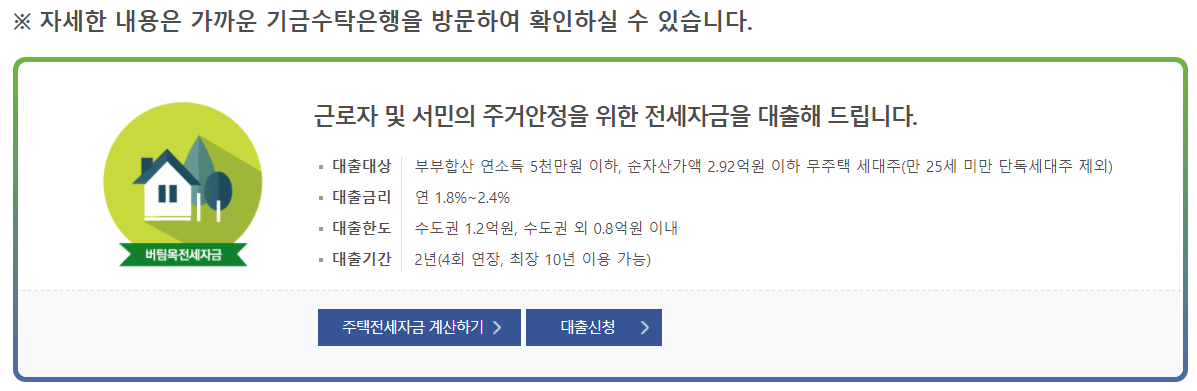 대출기간2년(4회 연장, 최장 10년 이용 가능)