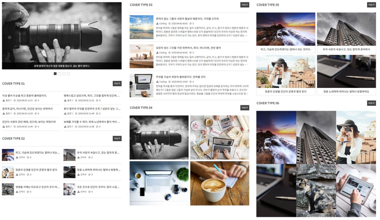 카테고리별로 다른 모양의 글 목록 디자인을 적용할 수 있습니다.